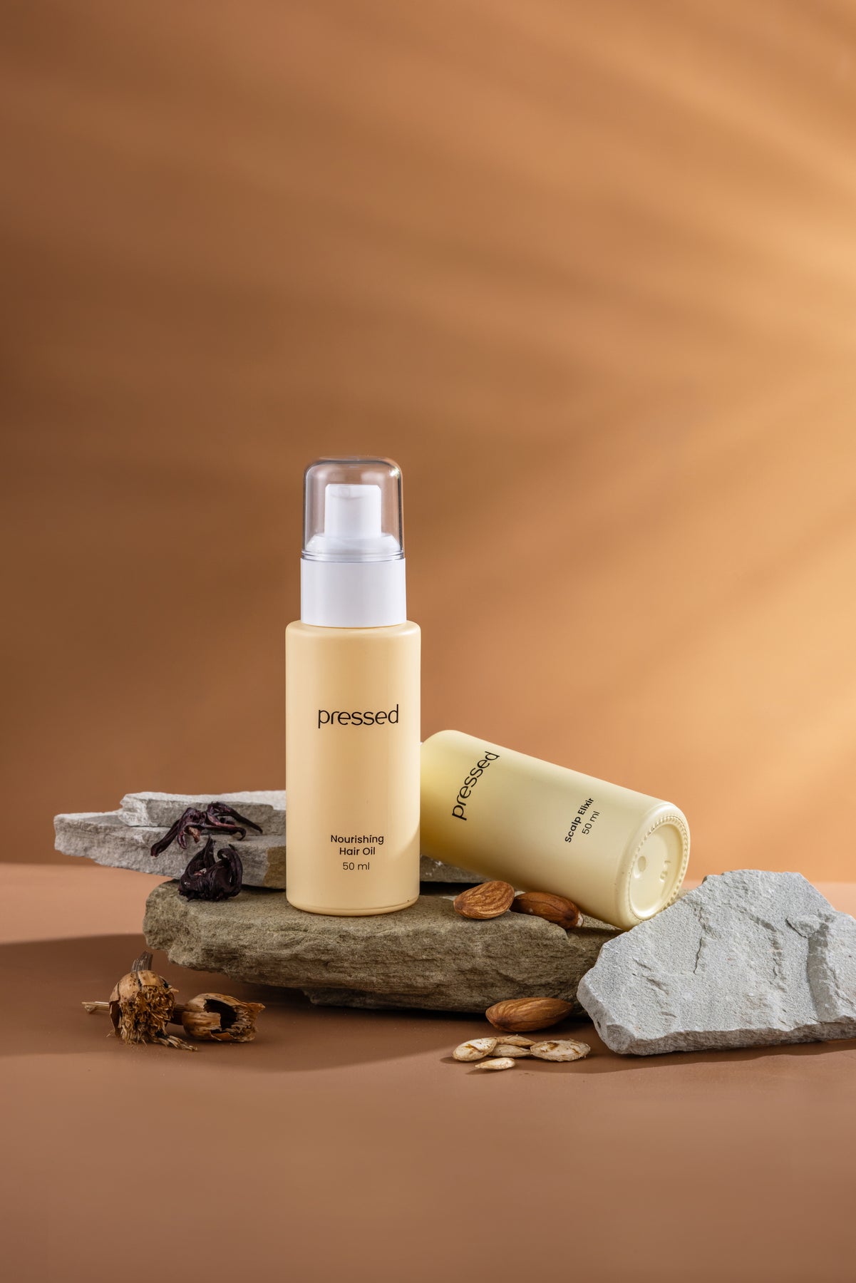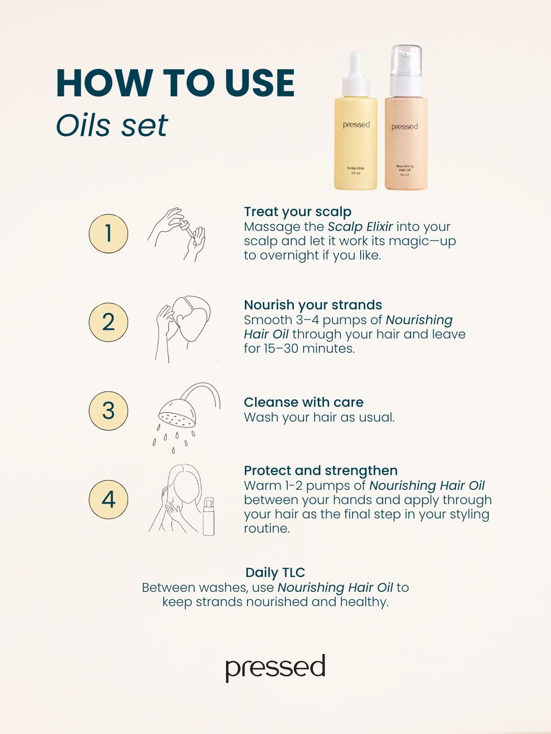 The scalp oil mixed as a base oil in my own scalp formulation… and I apply the nourishing hair oil on the ends of my strands after washing to seal in moisture.